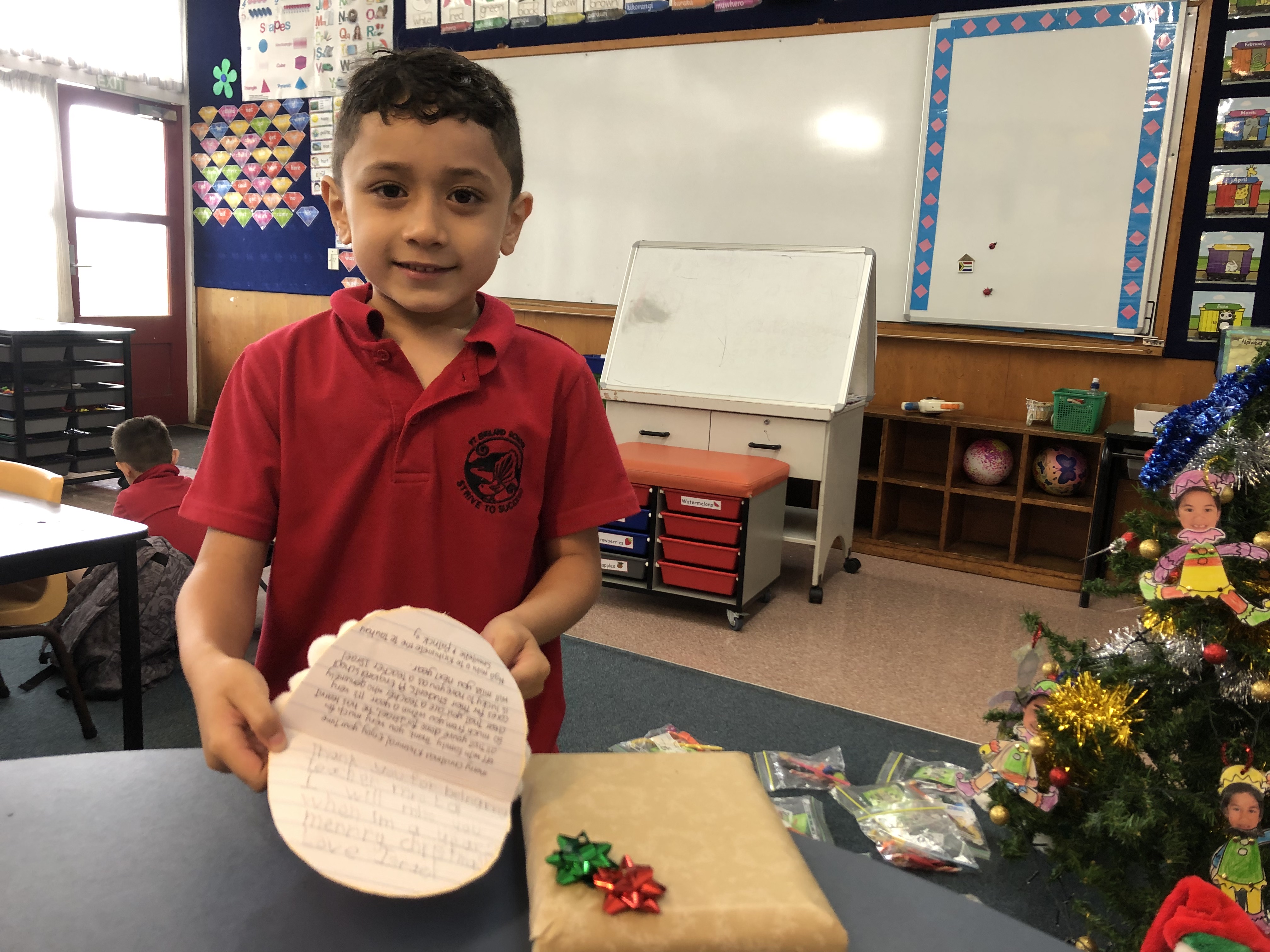 We had a fun day at school today even though it poured with rain. There were various sport activities and games organised for us by the Kelly Sports team, then we went and played with water guns and went on the water slide that was managed by Ms. Va'afusuaga. We squirted water on Ms. Ana and she was drenched. Mr. Whippy came and we all had ice cream. At lunchtime we had a pizza party. Just when we thought it was all over we had a surprise! Santa came to our class and gave us lollies. We were so excited and happy. We had an awesome day!